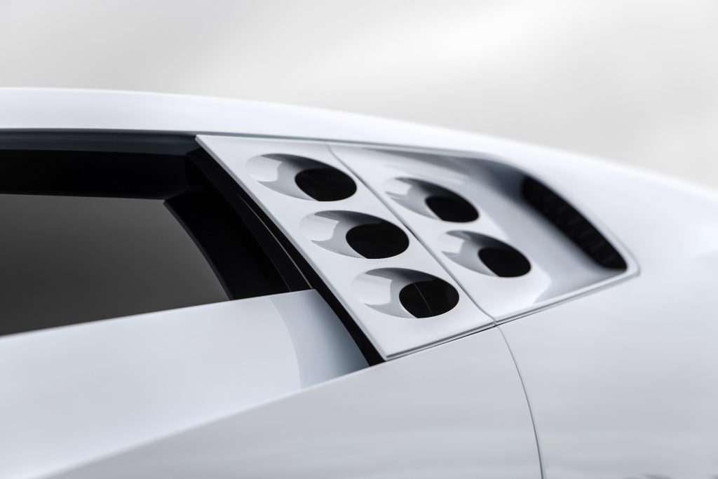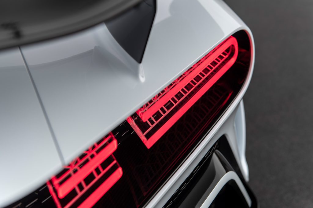 The Bauhaus genetics and the form-follows-function mandate are obvious in the gorgeous, new model. For example, the interesting “flying taillights” are comprised of a multitude of red plastic rectangles, each seeming to float in 3D space. They provide both a visual treat to those behind the cars (which will be virtually everyone driving near one) and allow sufficient space between them for an exit route for the copious amount of heat flowing off of the massive powerplant. Of course, there’s the horseshoe grill, seen on virtually every Bugatti for over 100 years. Ancheidt incorporated the famous “Bugatti line” (which, when viewed on the driver’s side, looks like a backwards letter “D” and is often painted a different color from the side panels and doors around it) in the air inlets on the sides, on the pillars just behind the doors. As you can see from the photos, it’s at once a revolutionary design which also is instantly recognizable as a Bugatti.