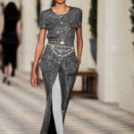 For the Chanel 2019/20 Métiers d’art show, all eyes were glued to Viard’s creations of off-shoulder, asymmetrical, ruffled print dresses and midriff revealing shirts. Heather pink tops, tweed skirts with front ruffles, flared and sequined capris, and chain belts with tiny purses swung with every stride.