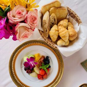 Yet, Bann is most about what’s outside those beautiful rooms. Guests are greeted in an open-air pergola, lushly furnished with colorful Thai textiles. Outside of each of the five rooms is a private dining table, poised towards the vineyard views, and at which afternoon tea and a leisurely three course breakfast are graciously served. Afternoon tea includes a choice of hot or cold teas, and both sweet and savory items, including fresh fruit from local K&J Orchards. Breakfast, served between 9am and 10:30am, includes choice of coffee or tea, a basket of baked goods, more fresh fruit, and a main course choice of both American and Thai offerings. Each service is unrushed and unhurried. And anyone requiring a late-night snack can help themselves to chips and other goodies from the honor bar, where a Nespresso coffee maker stands ready to provide a caffeine kick.