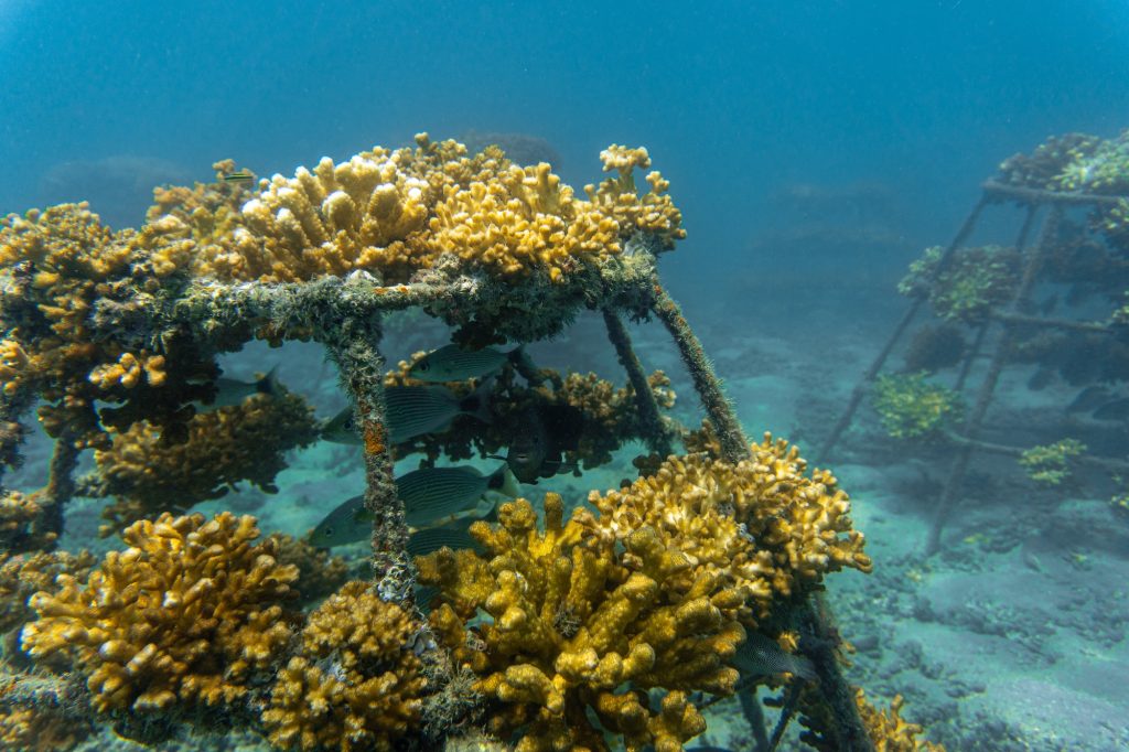 During a stay, visitors can join the hands-on coral planting in the shore, very popular for families and groups.dive in, putting on snorkeling gear to engage in hands-on coral farming. Alternatively, adoption of corals starts at a $50 donation to cover the annual cost of maintenance for one coral fragment. A small or large coral frame can be covered for $200 or $350, respectively, supplementing the efforts of 124 volunteers achieving an 83% survival rate.