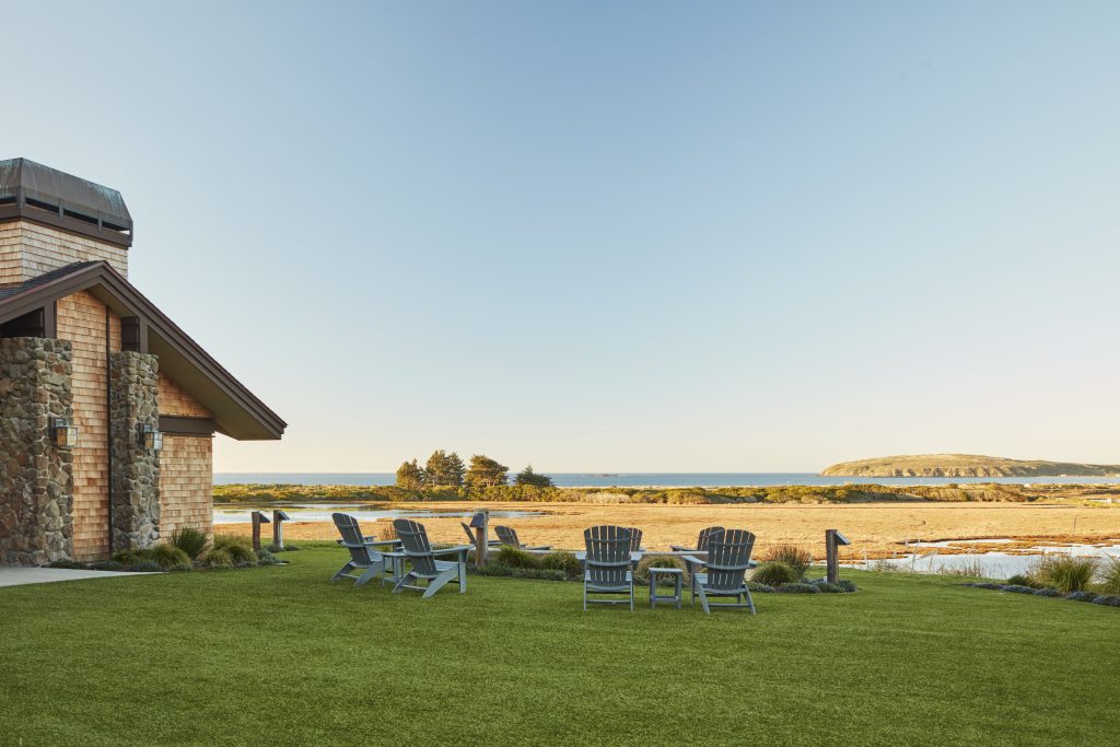 The Lodge offers both quiet moments and small adventures. Mornings begin with guided meditation, Pilates, yoga, or a bird walk led by a naturalist along the bluffs. Later, guests might take the complimentary bicycles down to Doran Beach before returning for a visit to the spa, a swim in the heated pool, or sink into the infinity-edge hot tub overlooking the Pacific. As evening settles, firepits glow across the property and s’mores in the lobby invite guests to gather. Others pause for wine and cheese by the fire or a game of bocce. For private occasions, the event spaces transform into elegant venues that open to unobstructed ocean views.