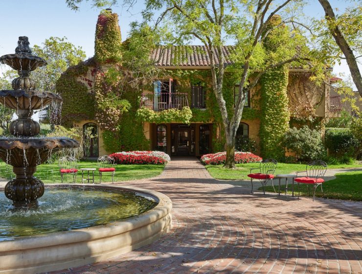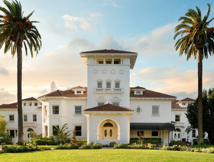 The grand Mediterranean-Revival Hayes Mansion gleams beneath a canopy of palms, looking more Napa Valley…