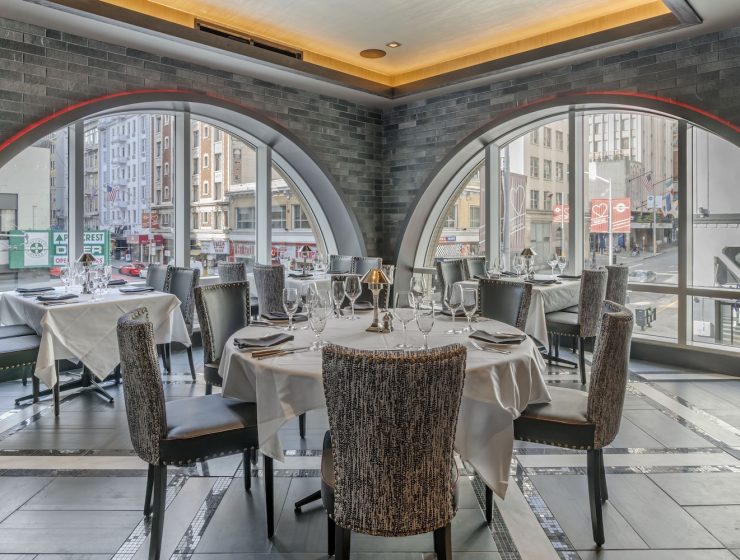 At the top of the staircase inside Mastro’s San Francisco, the light drops and the…